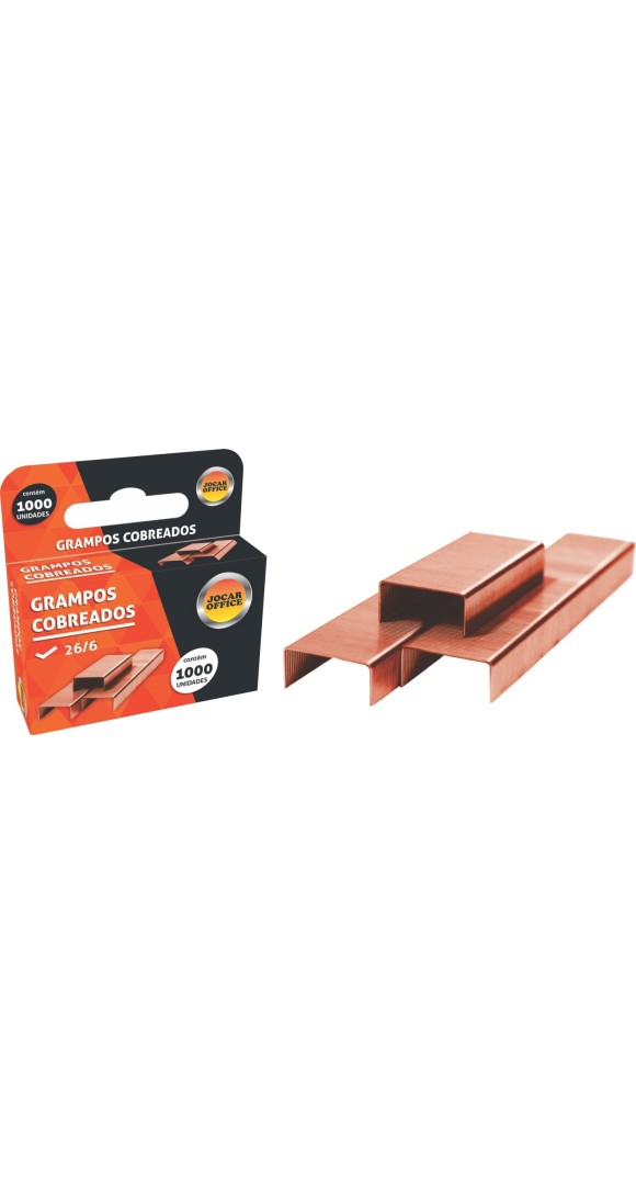 Grampos Cobreado tamanho 26/6 possuem tratamento galvanizado e grampeiam até 25 folhas.